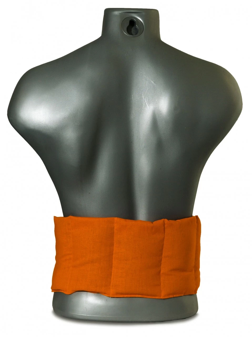 Das Körnerkissen ist ca. 65x15cm groß und besteht aus 7-Kammern. Seitlich hat es lange Bänder zum Umbinden. Länge pro Band ca. 55cm. Praktisch als Wärmekissen für den Rücken, aber auch als langes Kissen für den Bauch- und Nierenbereich.
