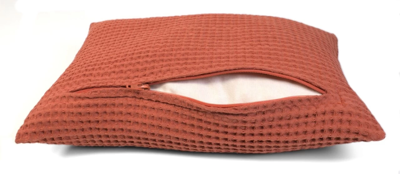 Kissenbezug aus 100% Bio-Baumwolle Waffelpikee ziegelrot