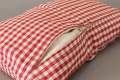 Inlett-Stoff: 100% Baumwolle, Bio-Singlejersey, ungefärbt und ungebleicht. Mit Reißverschluss zum bequemen Wechseln der Füllung und zum Regulieren der Füllmenge. Befüllt mit Bio-Lavendelblüten und Bio-Dinkelspelz. Die Füllung ist nicht waschbar. Die Dinkelspelze halten das Kissen in Form und lockern die Füllung auf.
