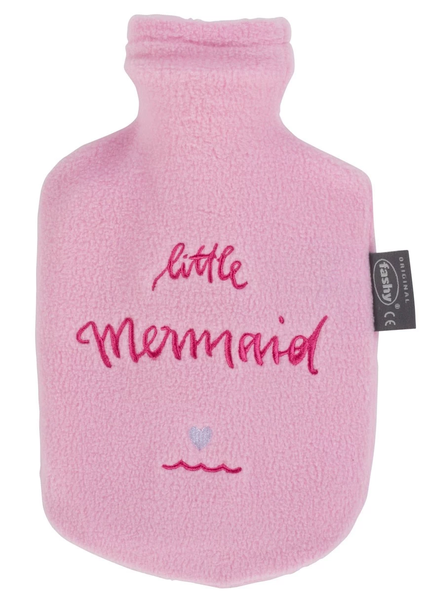 Kinder-Wärmflasche mit flauschiger Fleecebezug rosa mit Stickerei „little mermaid“
