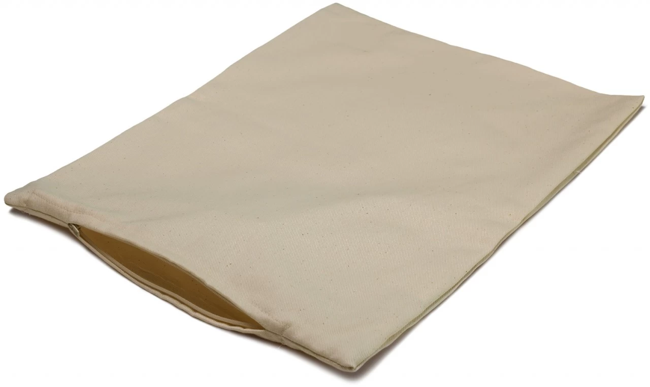Dieses Inlett aus festem, kräftigem und strapazierfähigem Baumwollstoff wird in Deutschland gefertigt. Der Stoff ist besonders dicht gewebt, so dass das Inlett perfekt für Dinkelspelze, Hirseschalen, Buchweizen und Zirbelholzspäne ist.