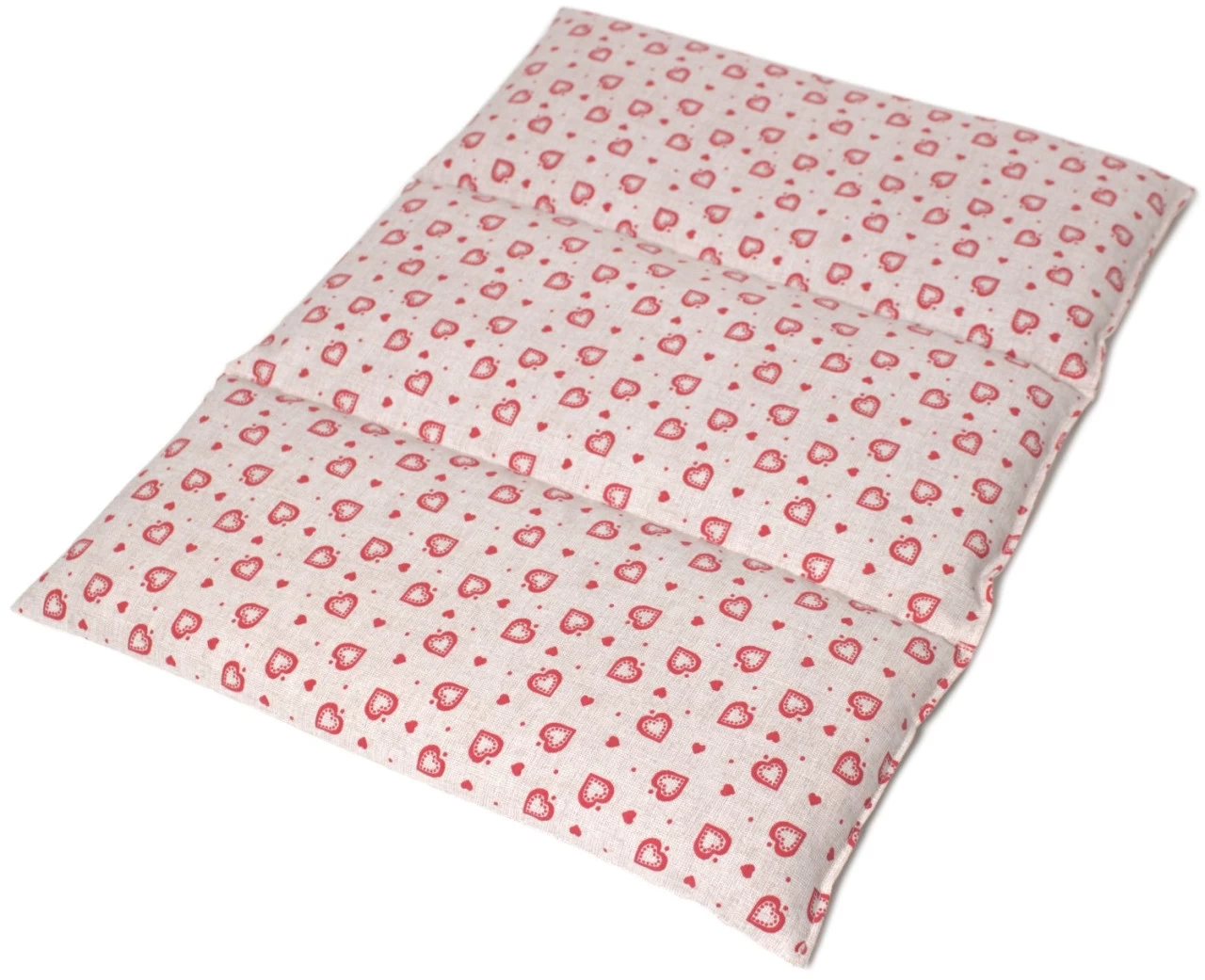 Das Kissen wird in 3 Kammern unterteilt, damit die Füllung nicht komplett verrutscht, aber im Gegensatz zum 6-Kammer Kissen, locker sitzt. Durch die Maße 40x30cm eignet sich das Kissen für große Körperregionen und ist somit als Bauchkissen, Fußwärmer, Bettvorwärmer und als Rückenkissen in Bauchlage, sehr gut geeignet.