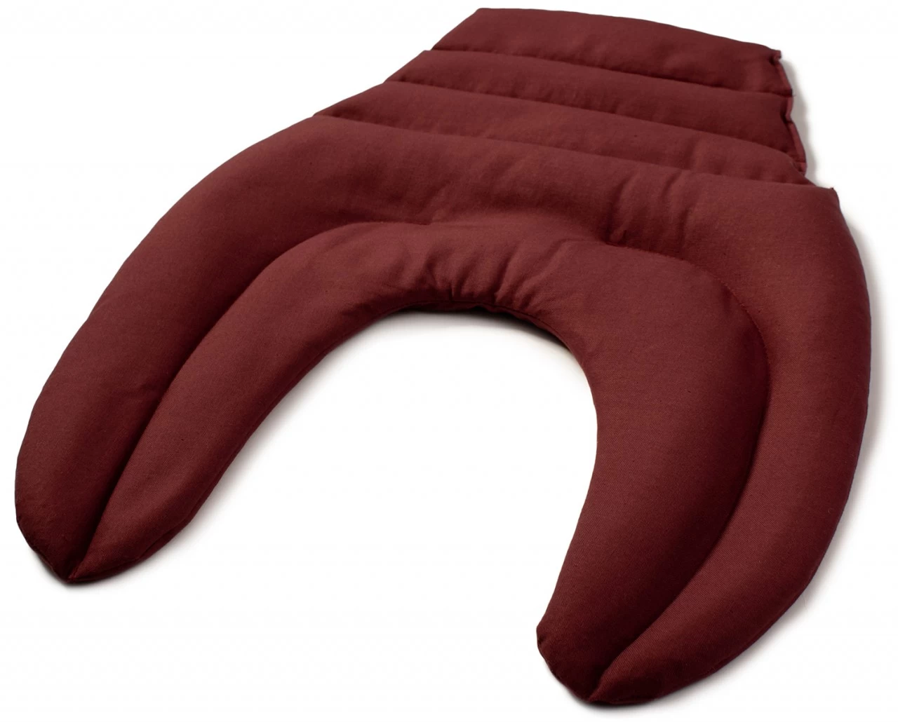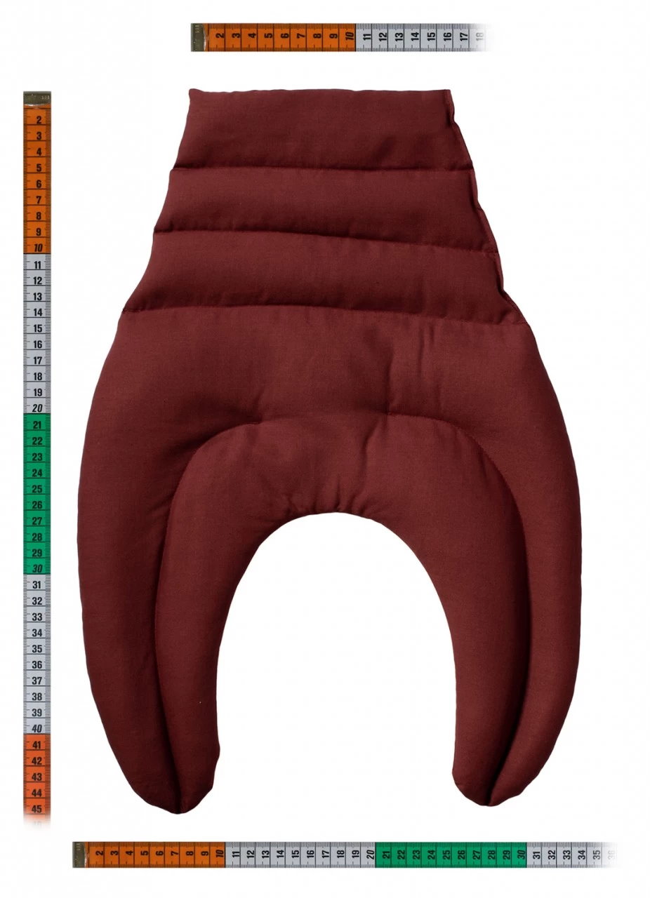 Dieses spezielle Kissen wurde so angefertigt, dass es trotz seiner geringen Füllmenge bequem um den Nacken gelegt werden kann und sowohl den oberen Schulterbereich sowie den Rückenbereich erreicht.