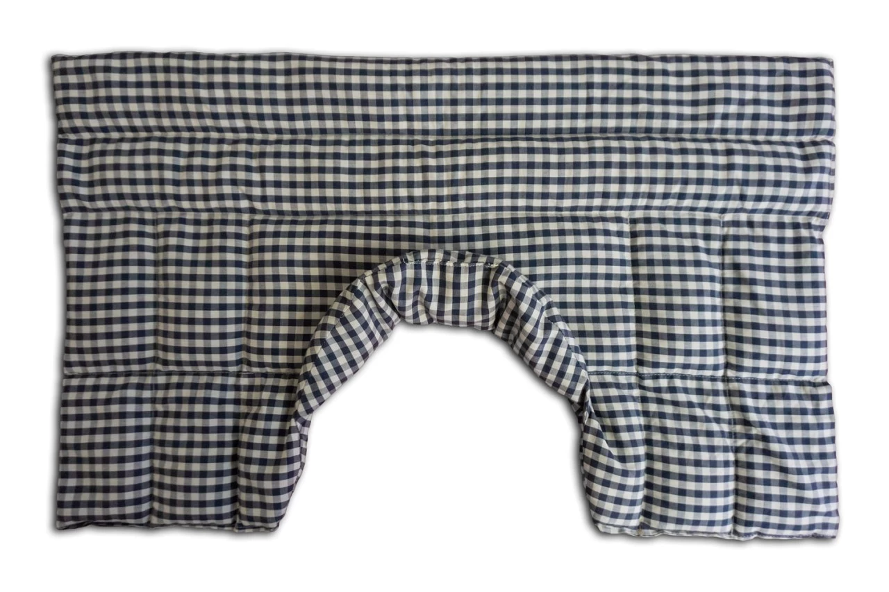 Das Kissen, mit der Größe von 55x30cm, gehört zu unseren großen Nackenwärmern. Auch der Kragen ist befüllt.