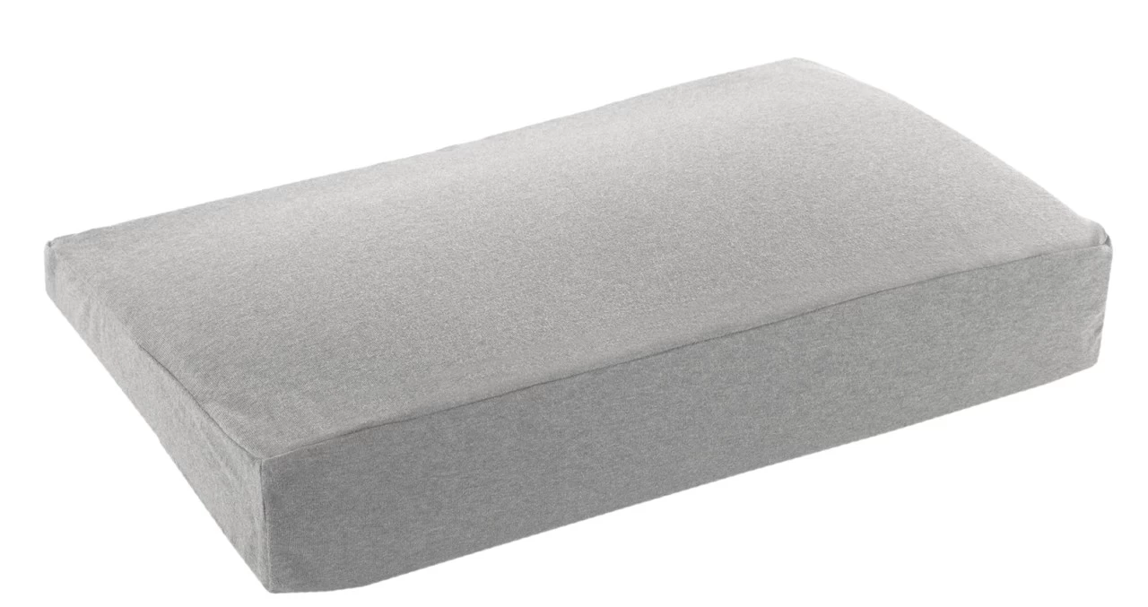 Das Kissen ist leicht keilförmig. Höhe 5cm bis 12cm.
