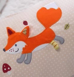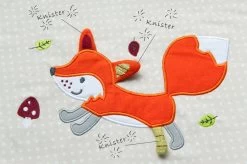 Schöne Fuchs Applikationen mit Knistereffekt auf weichem Feinköperstoff.