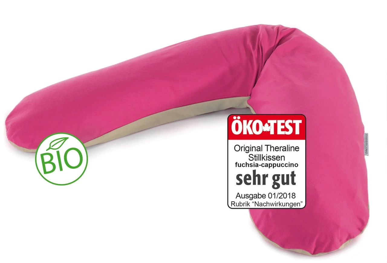 Bio Stillkissenbezug “ 2-farbig fuchsia/cappuccino“ für das Original Theraline Stillkissen 190×38